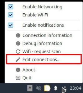 - After selecting, right-click the network icon and select Edit Connections.