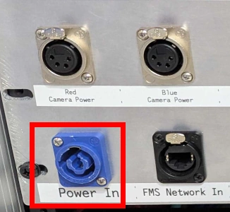 Locate the power/HDMI cable bundle and one twist lock power connector. They should be located in the bottommost drawer of the Storage Case, but may be located in one of the AV totes, depending on who last packed the equipment.