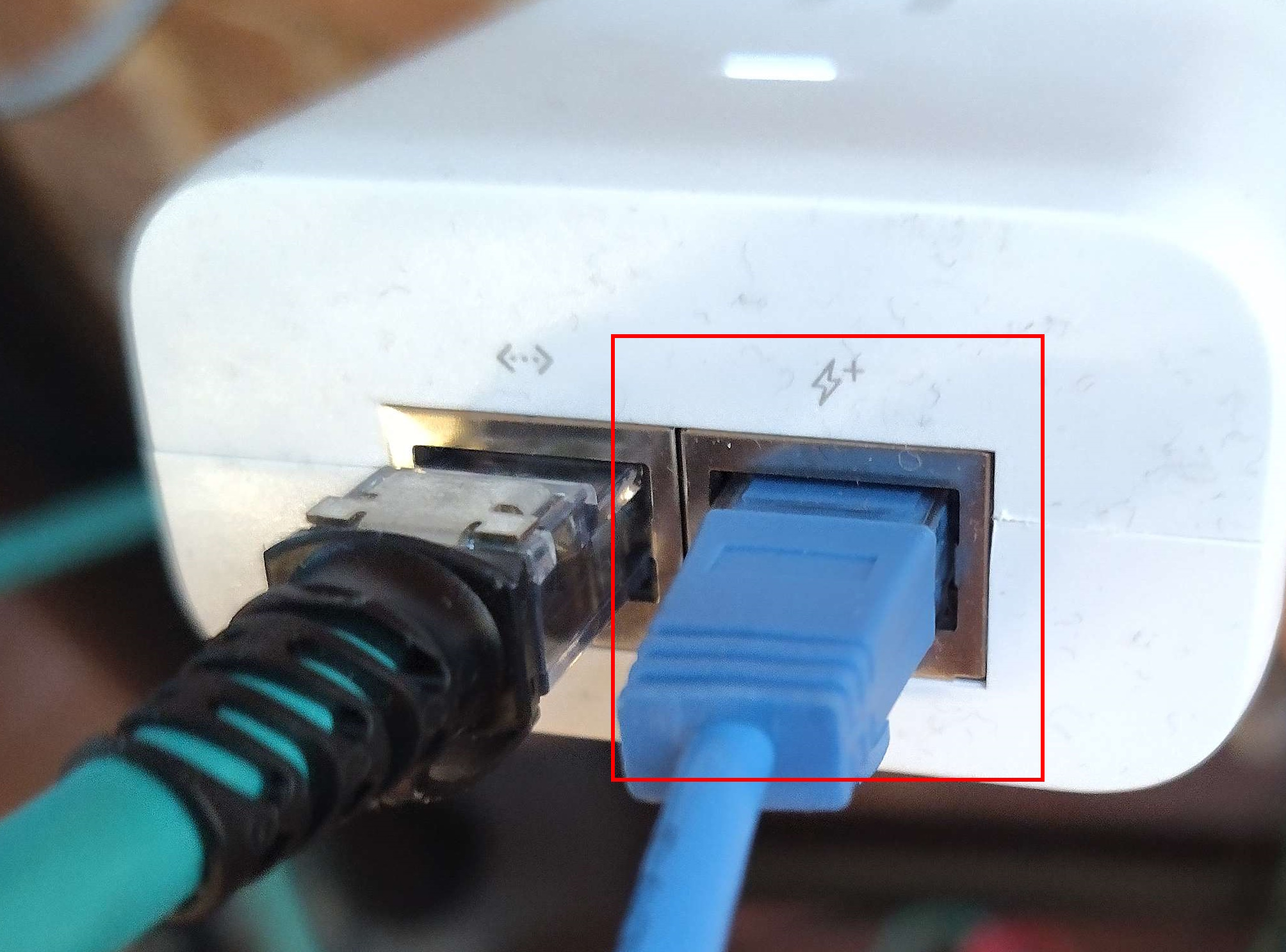 Connect the other side of the Ethernet cable to the PoE injector, in the port marked with a lightning bolt.