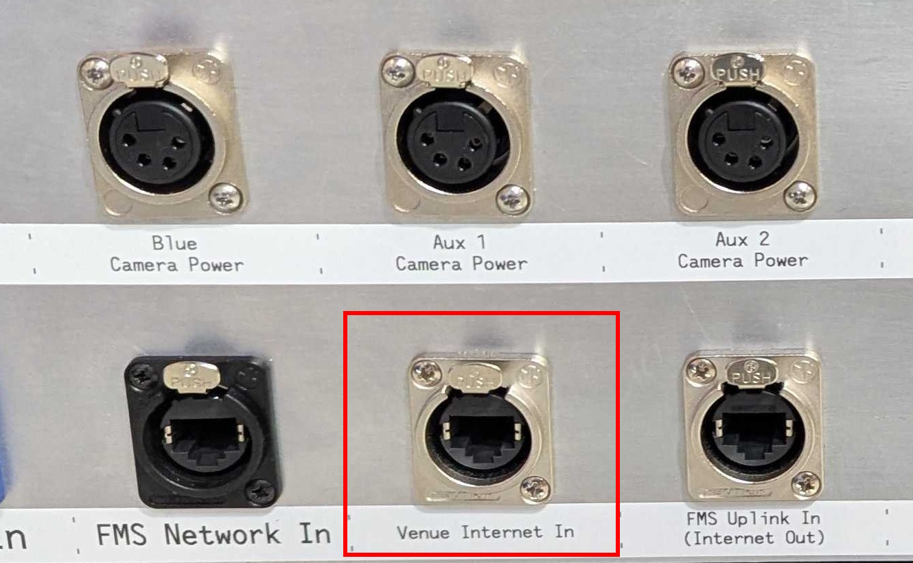 - Plug venue Ethernet into “Internet In” Ethernet port on the Streaming Unit, marked in red below.