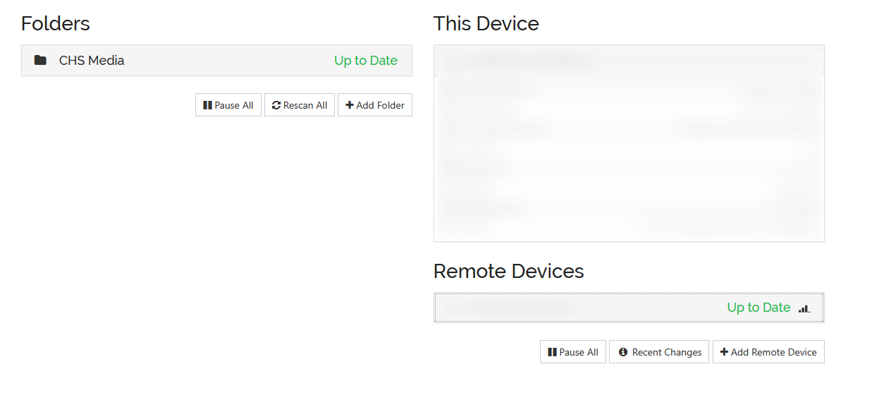- Wait a few minutes once connection to at least one peer is established. Syncthing will automatically scan for changes and download them to the computer if necessary. You can leave this in the background while continuing on with setup.