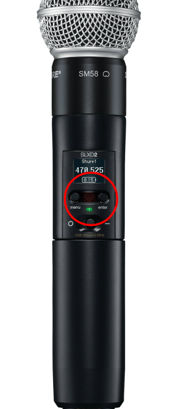 - Speak into each microphone briefly, and verify that the Audio gauge on the matching receiver bounces around with your voice. If it does not, recheck that the correct receiver is selected and try pressing Sync again.