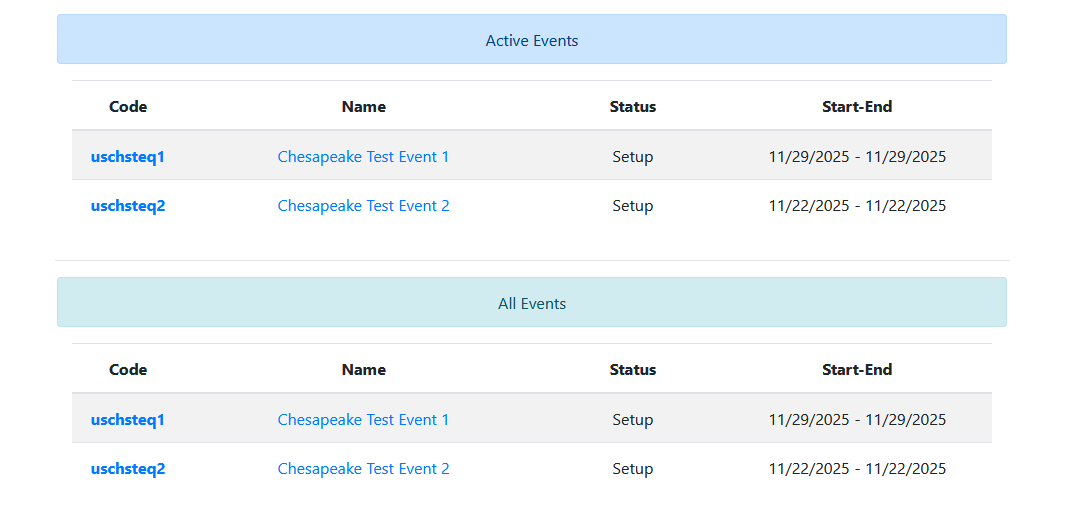 - If shown a list of events, select the current event. Ask the Equipment Manager or FTA, or use the dates as a point of reference.