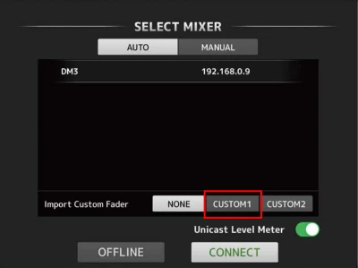By default, the custom fader banks are not imported from the mixer to the app when connecting. You will need to select “Custom1” on the first screen of the app to sync them.